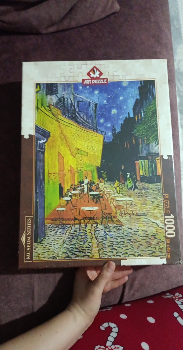 ARTPUZZLE markalı 1000 parçalı Van Gogh gece kafeteryası temalı puzzle. Canlı ve çok renkli görüntü, 68 x 48 cm boyutundadır. Hiç açılmadı yeni.