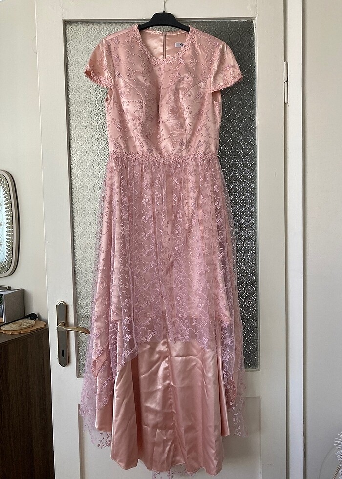 Ürün sadece 1 kez giyildi. Ön boyu 90 cm. İç astarları çift kat. Arka boyu (kuyruk) 145 cm. Bel çevresi 75 cm. İki koltuk arası 42 cm. Kuyruk kısmında küçük bir deformesi var tamir ettirildi. Resimde mevcut ancak giyildiğinde hiçbir şekilde belli olmamakta.
