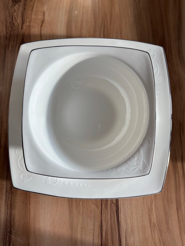 Aryıldız 12 kişilik yemek takımı ürün sadece 1 kere ve sayılı parçalar kullanılmıştır evimde yerim olmadığı için açıp kullanamadım maalesef orijinal kutusunda değildir çok sade kibar aynı zamanda şık bir modeldir Kocaeli Başiskele de oturmaktayz 60 parça olduğunu düşünüyorum paketli olduğu için hepsini açmak istemedim ciddi alıcı için tek tek açıp bakabilirim kahve fincanından kupalarına kadar seramik çorba tenceresine kadar mevcuttur sıfır fiyatı 30 bindir