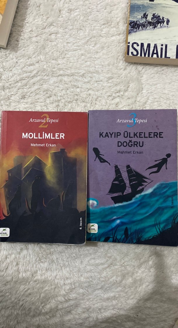 Mehmet Erkan'ın Arzavul Tepesi serisinden "Mollimler" ve "Kayıp Ülkelere Doğru" adlı iki roman.