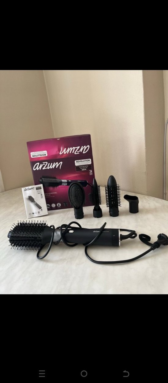 Arzum saç şekillendirici seti, çeşitli fırça başlıkları ve konsantre edici uç ile çok yönlü şekillendirme sağlar. Siyah renktedir. 5 farklı uç ile daha yeni alındı kullanılmadı bile sadece deneme yapıldı kutusunda garantili♀️