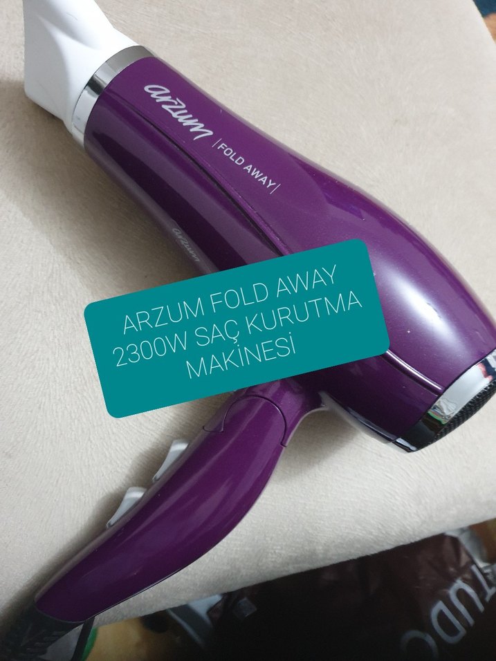 Parlak mor renkte Arzum Fold Away saç kurutma makinesi 2300W güç ve katlanabilir yapıya sahiptir. Kompakt ve kullanışlıdır.