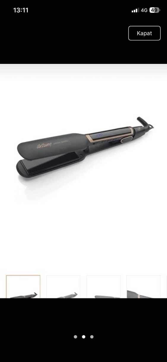 Parlak siyah saç düzleştirici, geniş plakalar ve dijital ekran ile hassas ısı ayarı sunar. Döner kablo ile kolay kullanım sağlar. ✨