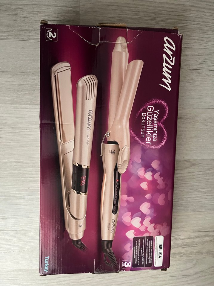 Hiç kullanılmadı. Arzum saç şekillendirici set, düzleştirici ve maşa içerir. Ayarlanabilir ısı ve şık tasarıma sahiptir.