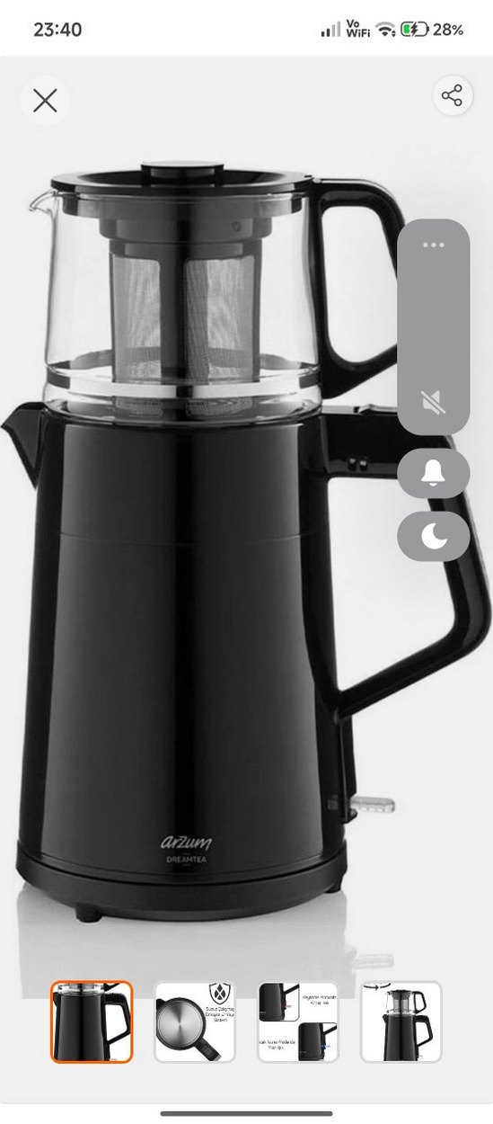 Arzum siyah çay makinesi, üst bölümde demliği ve infuser filtresiyle çay demlemek için uygundur. Dayanıklı sapı ve modern tasarımıyla kullanım kolaylığı sağlar.