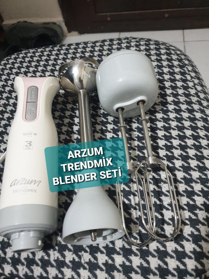 Arzum Trendmix blender seti 1000W motor, paslanmaz çelik blender ve çiftli çırpıcı aparatıyla birlikte gelir. Beyaz ve gri renktedir.