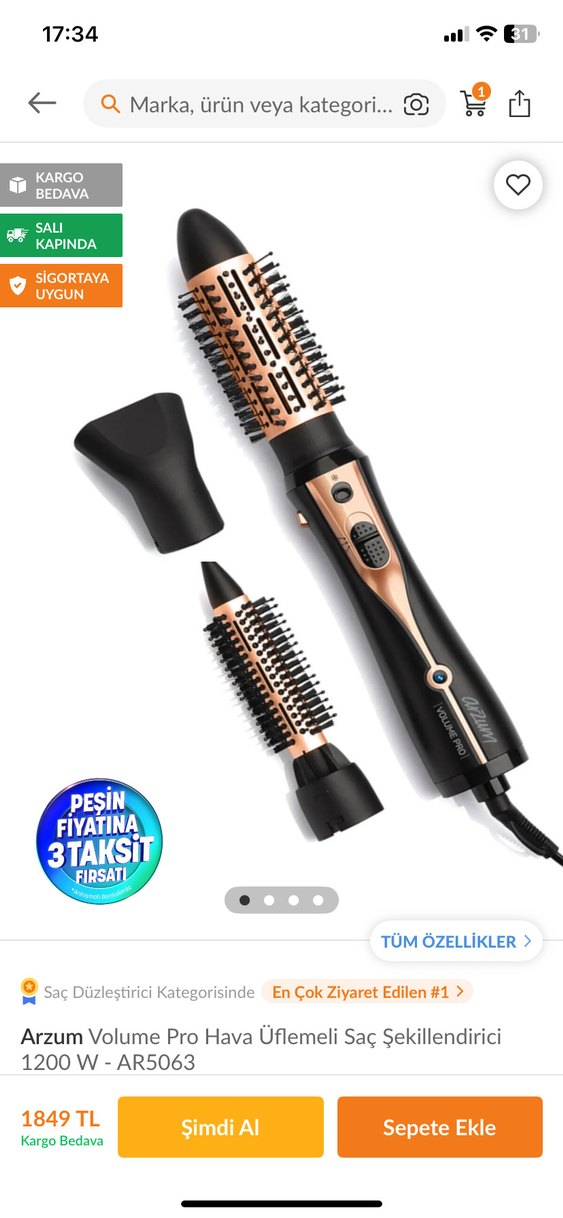 ARZUM volume pro hava üflemeli saç şekillendirici 3 başlıklı