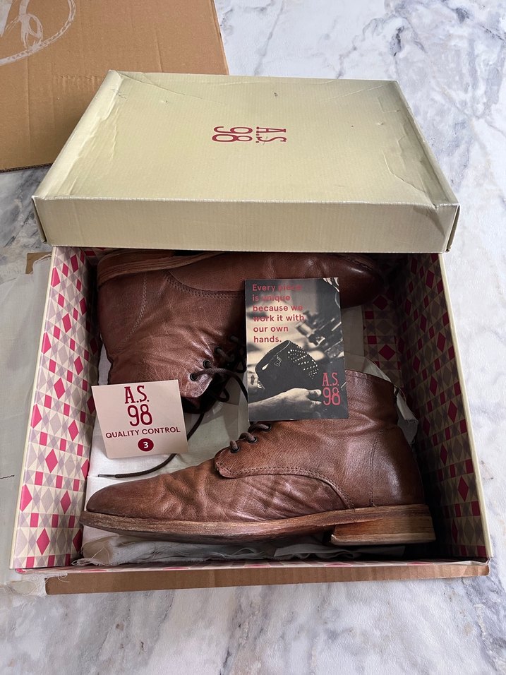 AS 98 markalı kahverengi deri erkek bot’u. Vintage tarzda, modaya uygun ve günlük kullanım için ideal muhteşem el yapımı bot.