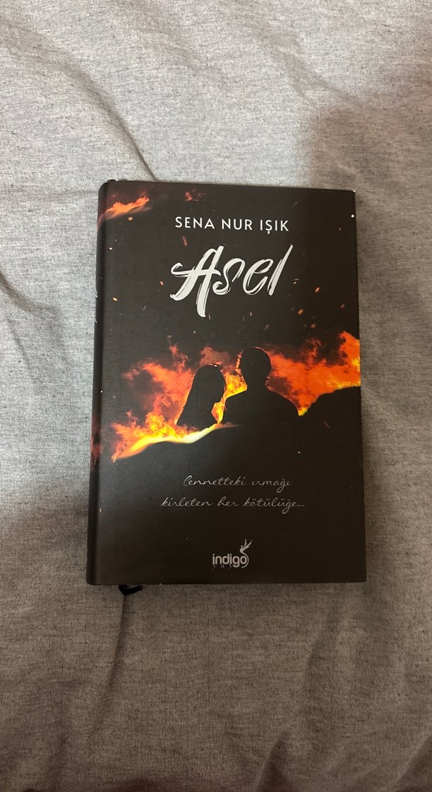 Sena Nur Işık'ın "Asel" romanı, alevli bir arka plan önünde iki siluetle duygusal ve çatışmalı bir hikaye sunuyor. Indigo yayınevinden.