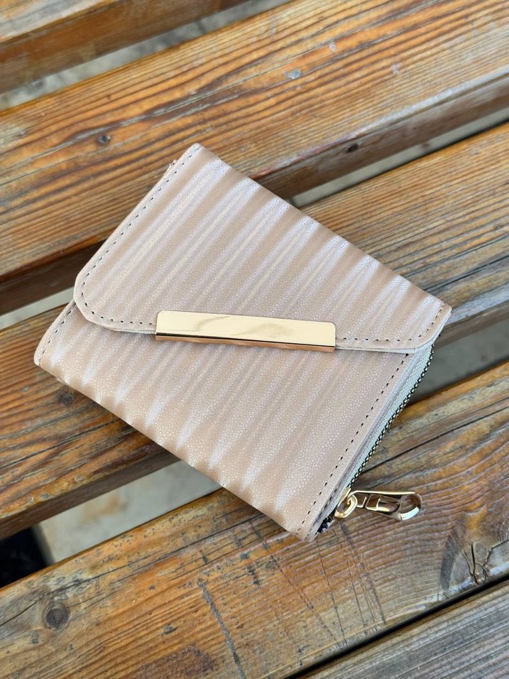 Bej renkte deri kadın cüzdanı, fermuarlı kapama ve modern klasik tasarıma sahiptir. Günlük kullanım için şık ve sade bir seçenektir. 34531
