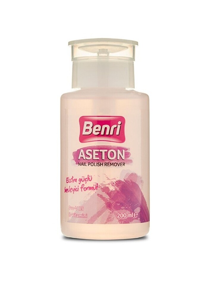 Benri Ekstra Güçlü Pompalı Aseton 200 ml Yalnızca açık renkli ojelerin değil çok kat sürülmüş koyu renkli ojelerin de iz kalmayacak şekilde tırnaklardan uzaklaştırılmasını sağlayan Benri Ekstra Güçlü Pompalı Aseton 200 ml ne tırnaklara ne de tırnak etlerine zarar veriyor. Pompalı mekanizması sayesinde kolay bir şekilde kullanılması ürünün öne çıkan avantajları arasında yer alıyor. Ojelerinizi çıkarmak için pamuğu asetonun çanak kısmına bastırmanız, çekmeniz ve asetonla ıslanan pamukla tırnaklarınızı ovuşturmanız yetiyor.