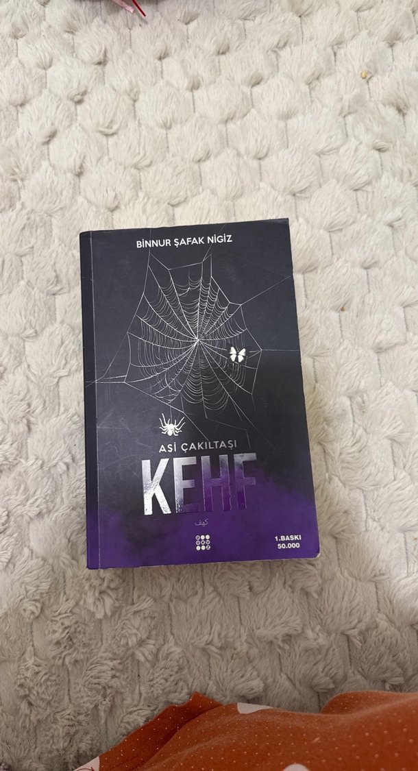 Binnur Şafak Nigiz'in Asi Çakıltası kitabı, örümcek ağı ve kelebek desenli koyu kapak tasarımıyla gizem ve merak uyandırıyor.
