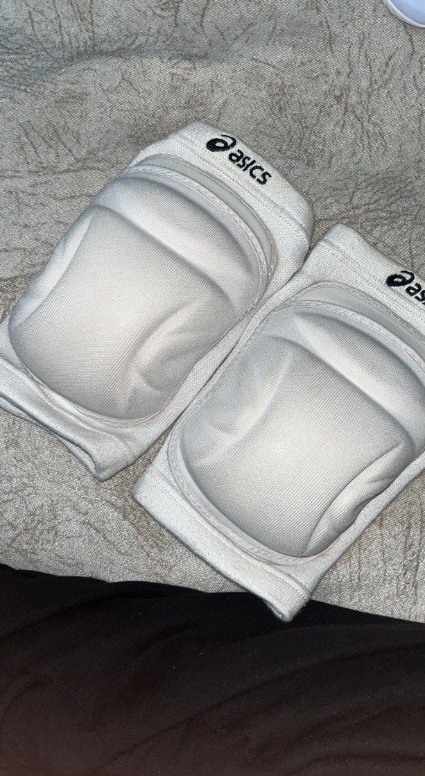 Asics marka beyaz motosiklet diz koruyucu, yumuşak fleece kumaş ve ayarlanabilir Velcro kayışlara sahiptir, sokak modası için uygundur. ️