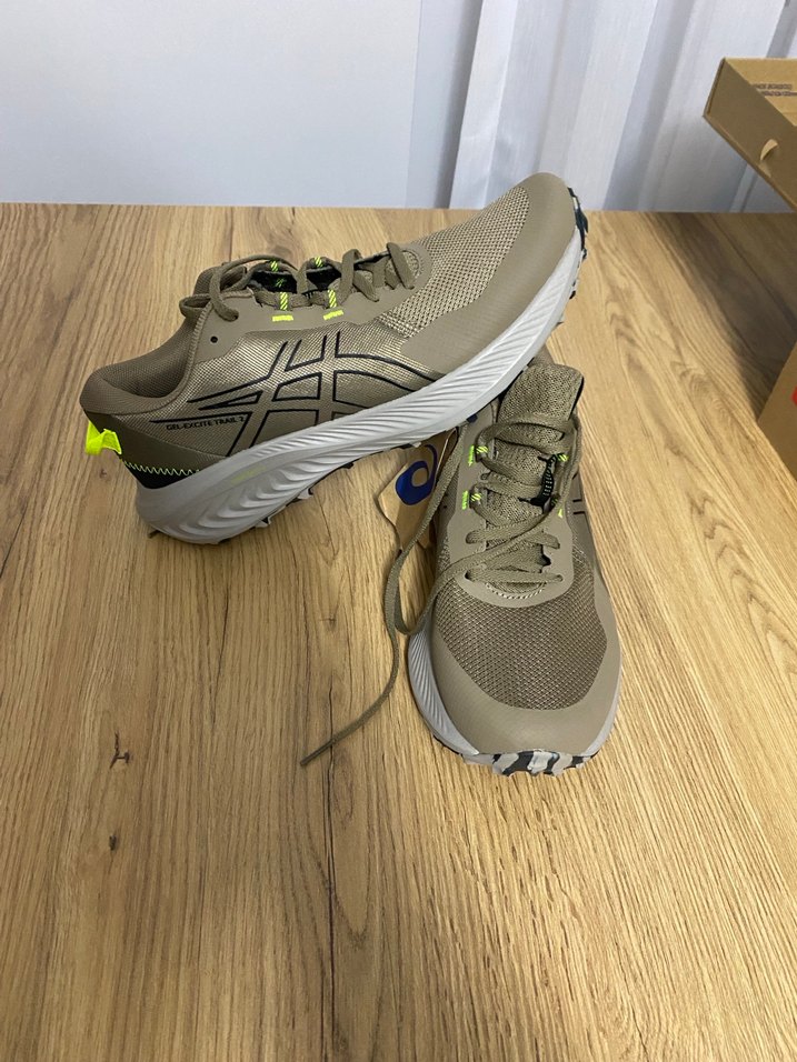Bej ve gri renklerde, baskılı detaylı, bağcıklı erkek spor ayakkabısı. Kauçuk tabanlı, rahat ve sokak stiline uygun.