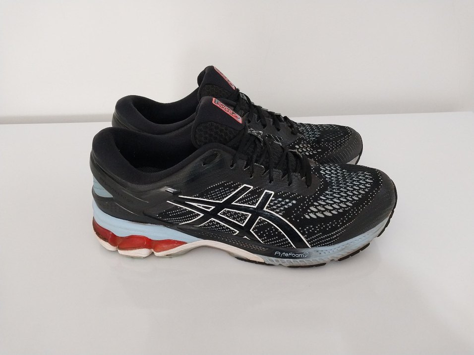 Asics Gel-Kayano 26 Koşu Ayakkabısı.42.5 numara ama kalıbı dardir 41 yada 41.5 giyene rahatlıkla olur.ic tabanı 27 cm.Kullanıma bağlı muhtelif kısımlarında ufak tefek leke var aşınmalar mevcuttur.iç tabanlığı aşındığından dolayı ayakkabıcıda farkli tabanlıkla değiştirildi.