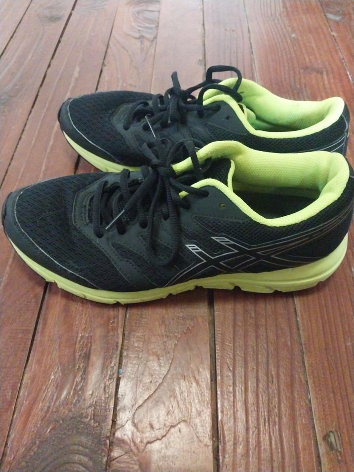 Lastik yapılı, siyah ve sarı renkli, spor ve günlük kullanım için uygun koşu ayakkabısı. Çok az kullanılmış hiç delik leke yırtık vb yok .