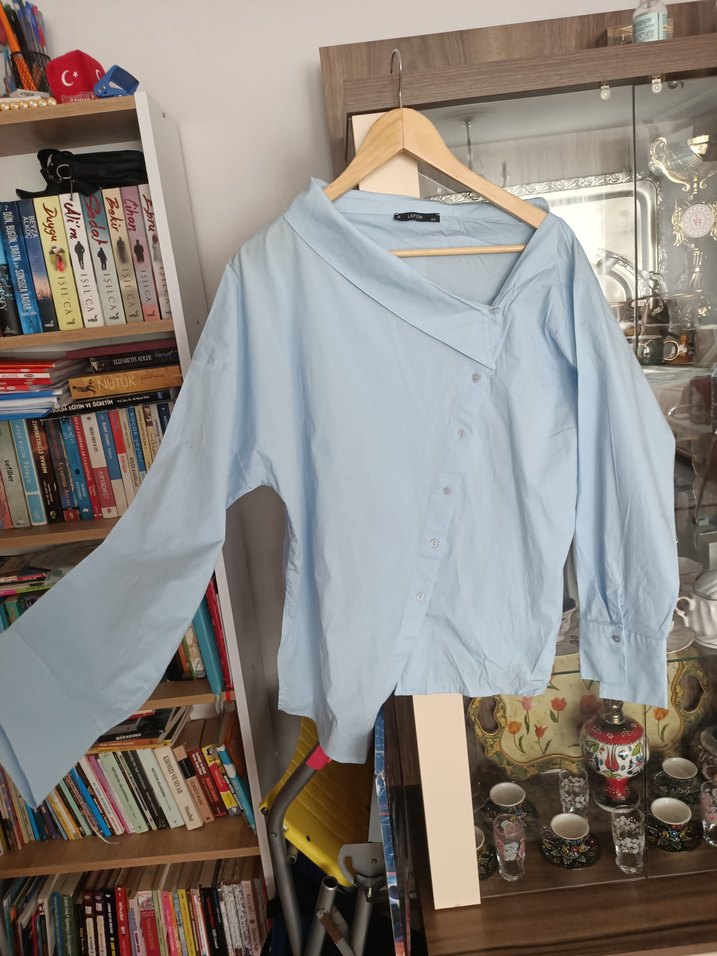 Marka: JF Lefon Renk: Mavi Malzeme: %97 Koton – Yumuşak ve rahat kumaş Kesim: Asimetrik yaka detayıyla şık görünüm Kol tipi: İki kol Beden: 42 Ölçüler: • Kol altı – kol altı: 62 cm • Sağ taraf uzunluk (omuzdan aşağı): 72 cm • Sol taraf uzunluk (omuzdan aşağı): 63 cm Modern ve farklı bir kesime sahip, günlük & şık kombinlere uyumlu mavi gömlek