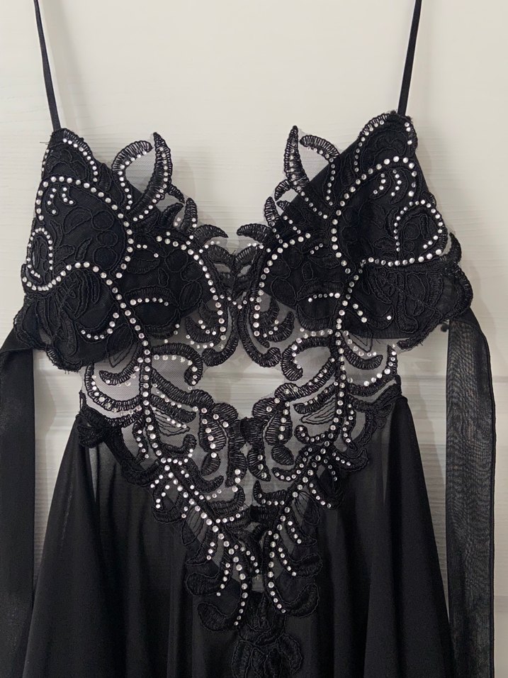 Karın açıklığı sırt dekoltesi ve incecik Şifon kumaşı ile harika bir ürün sırt dekoltesinde bağlama detayı var boyundan askılı mini tek kelimeyle süper bir gecelik