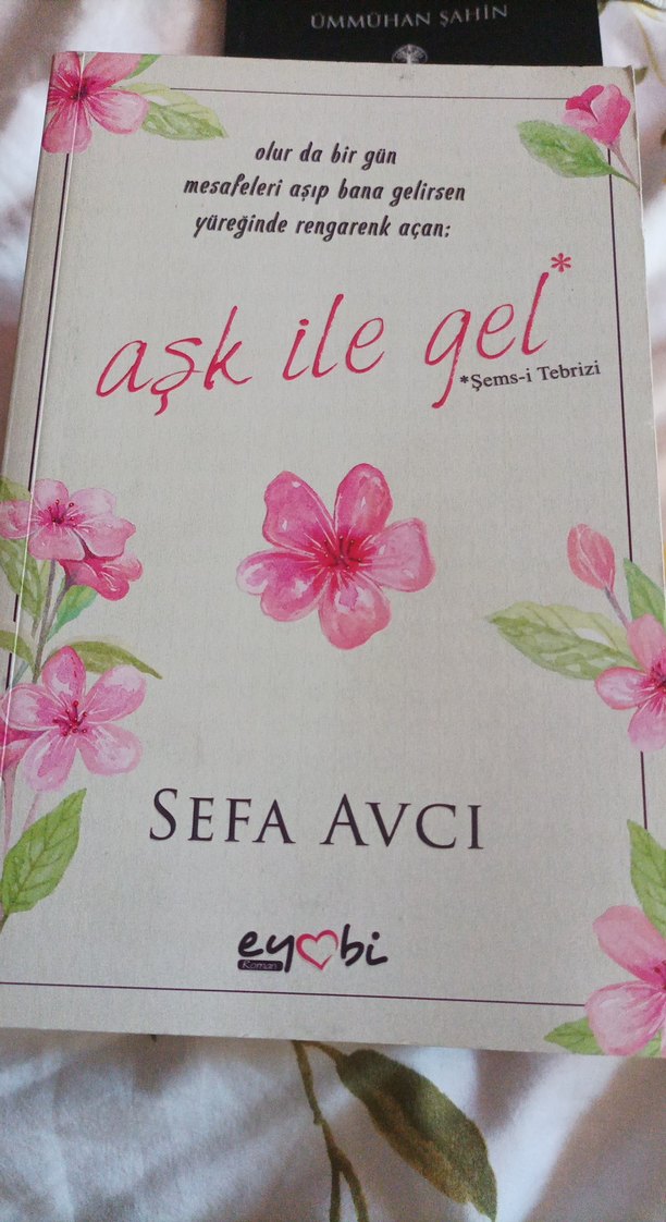 Sefa Avcı'nın "Aşk ile Gel" adlı romanı, Şems-i Tebrizi'den alıntı ve rengarenk çiçeklerle süslü kapak tasarımına sahiptir.