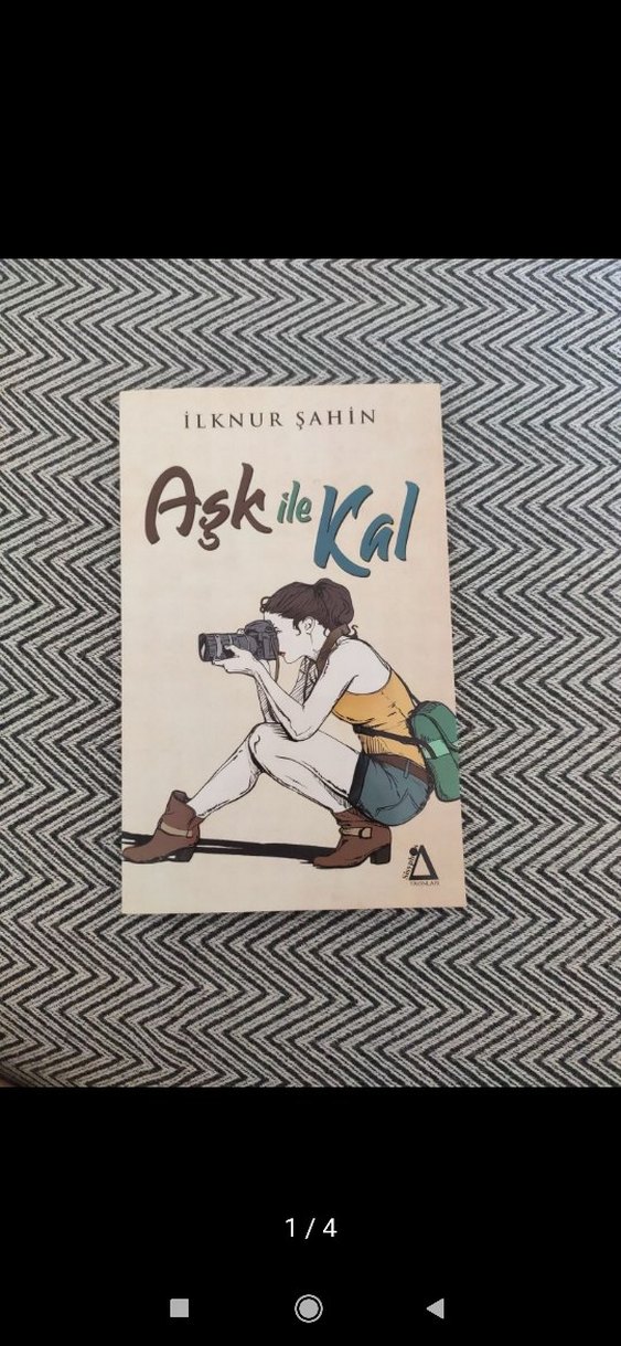 İlknur Şahin'in "Aşk ile Kal" adlı romanı, kapakta fotoğraf çeken bir kadının illüstrasyonunu içerir.