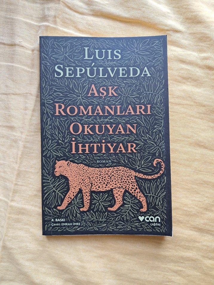 Luis Sepúlveda'nın 'Aşk Romanları Okuyan İhtiyar' romanı, kapakta leopar ve yaprak desenleriyle dikkat çekiyor. Can Yayınları tarafından yayımlandı.