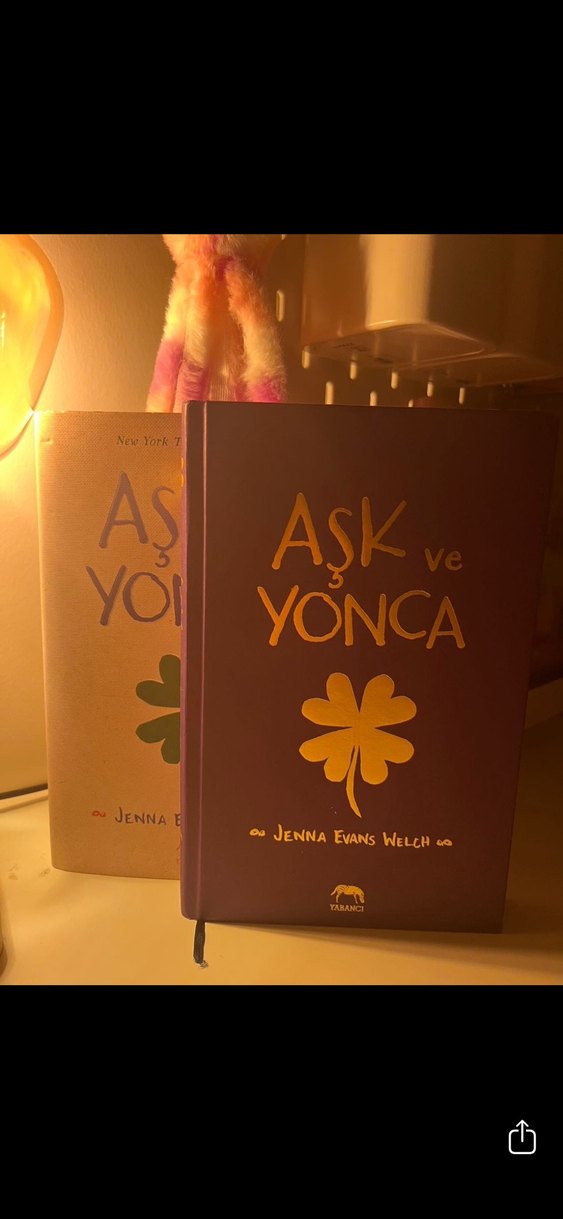 Jenna Evans Welch'in yazdığı 'Aşk ve Yonca' adlı roman, altın yonca figürlü kapağa sahip. Timaş yayınevi tarafından basılmıştır.