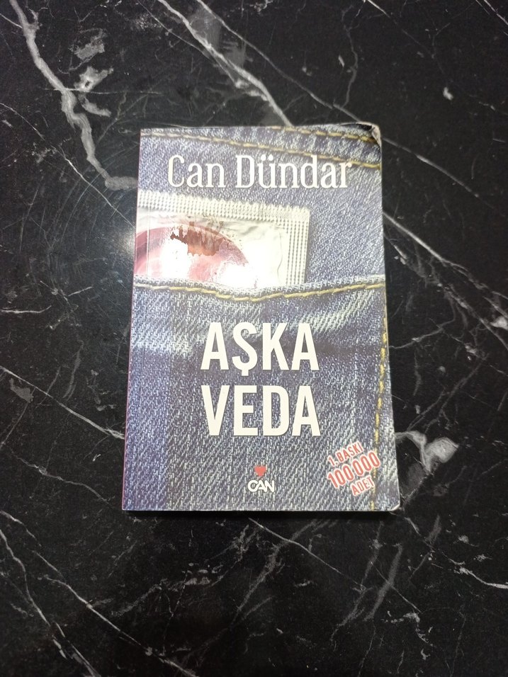 Can Dündar'ın Aşka Veda adlı romanı, aşk ve veda temalarını işliyor. Kapakta kot ceket cebine benzeyen bir tasarım yer alıyor.