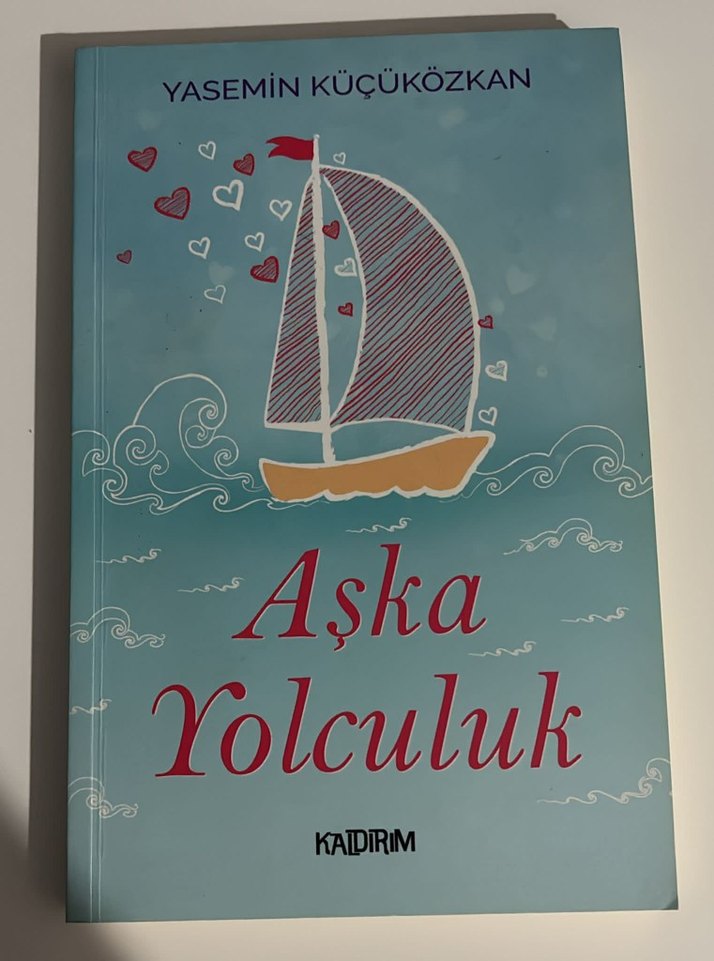 Yasemin Küçüközkan'ın Aşka Yolculuk adlı romanı, aşk ve yolculuk temalarını işler. Kapakta romantizmi simgeleyen kalpli yelkenli bulunur. ❤️