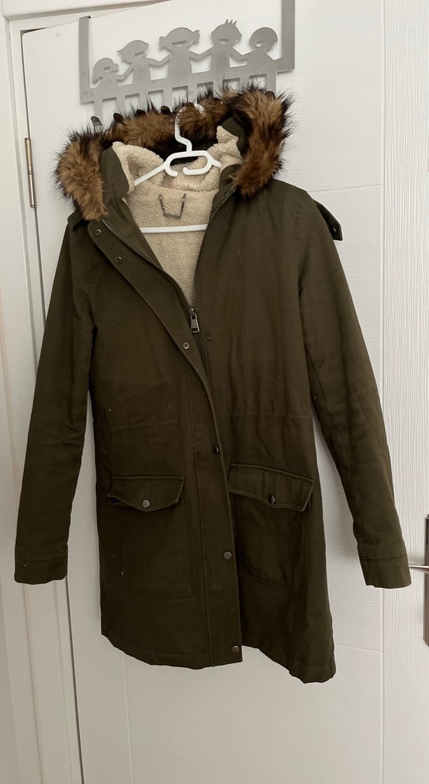 Asker yeşili kapüşonlu parka