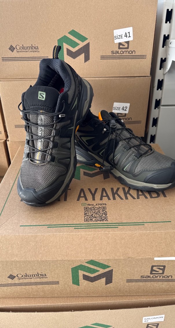 Asker yeşili ve siyah renkli, baskılı desenli erkek outdoor ayakkabısı, Velcro özellikli, sokak modası ve rahat athleisure tarz için uygun.Su geçirmez ve içten dikişli orjin ayakkabı Numara 41-42-43-44-45