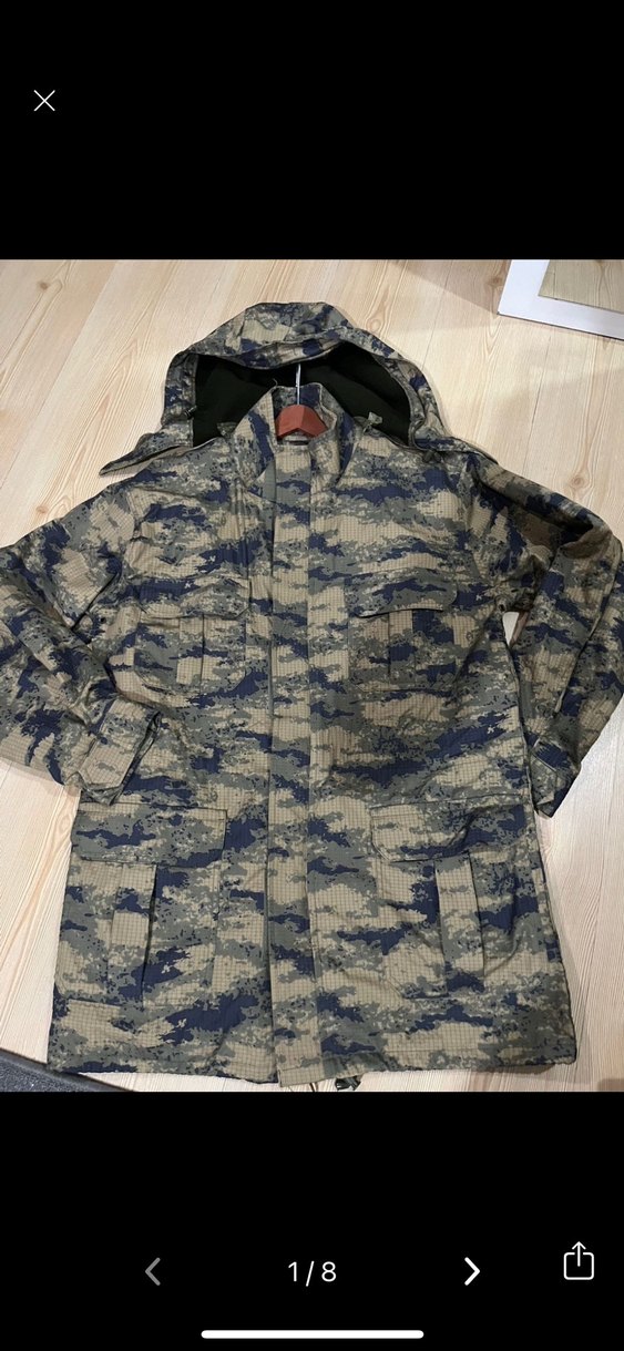 Haki laci havacı askeriye. Büyük beden. Ölçüleri fotolarda mevcut. Beden etiketi de. Avcılar, dağcılar rahatlıkla kullanabilir. Kapüşonu ve içindeki poları çıkabiliyor. Çok işlevli. kamuflaj desenli, kapüşonlu uzun erkek mont. Sentetik kumaştan, kemerli ve regular fit kesime sahip, sokak stili ve açık hava için uygun. 52 beden 5 drop. 2xl, 3xl giyene rahatlıkla olur. Ölçülerine bakınız. İadesi yoktur. Defosu yoktur. 1-2 kez ancak kullanıldı.
