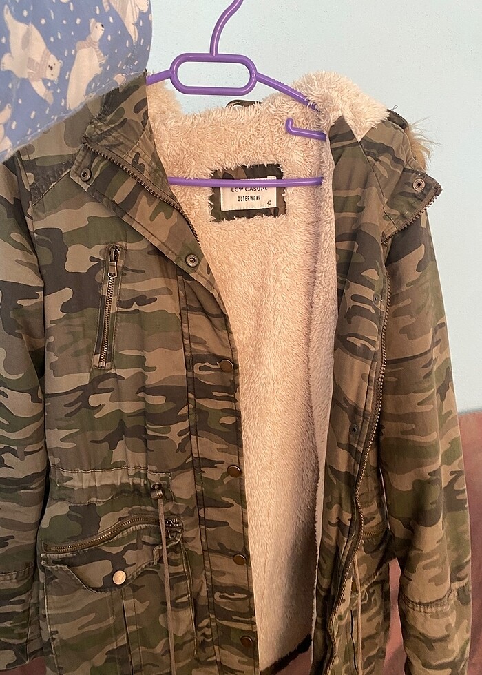 İçi tamamen tüylüdür ve uzun bir parka. Oldukça sıcak tutuyor. Kapuşonundaki tüyleri kabarık ve temizdir. Herhangi bir sorunu yoktur. Artık kullanmadığım için satıyorum. Rengi askeri yeşildir, bazı resimlerde ışıktan kaynaklı sarı gibi çıkmış