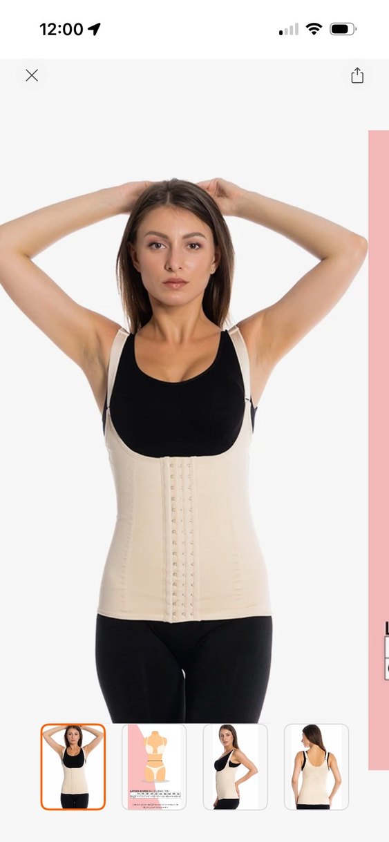 Bej renkte, vücuda oturan yapıda bel ve göbek korsesidir. Ayarlanabilir askılar ve önden kopçalı kapanış mevcuttur. Sadece 1 kez abiye içine kullanılmıştır.