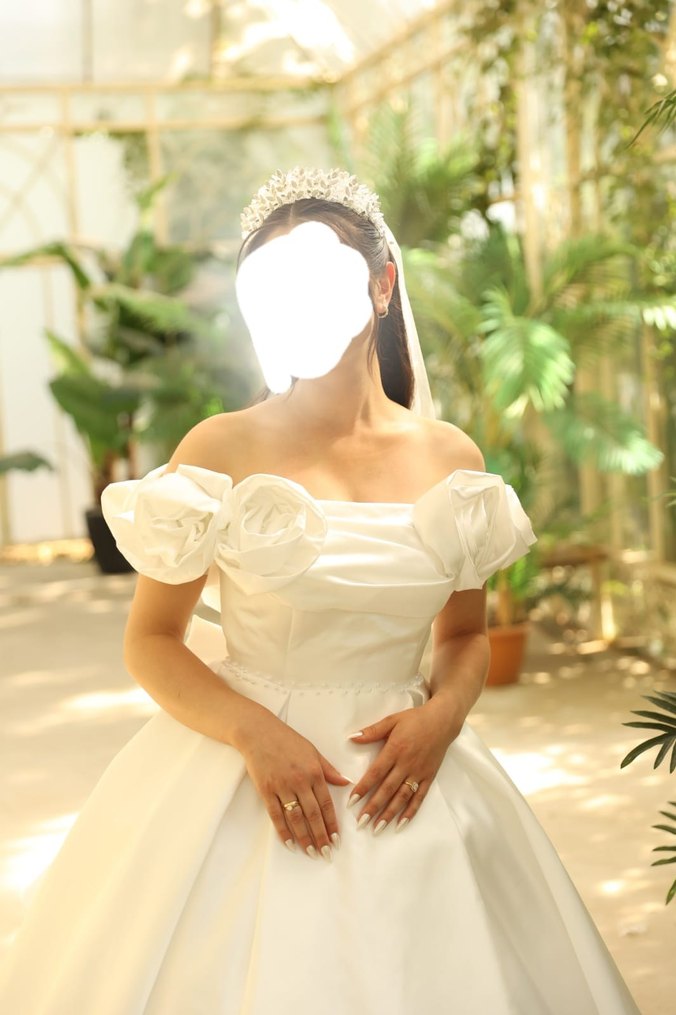 Beyaz A kesim, askılı kollu, straplez yakalı uzun gelinlik. Klasik şıklık ve avangart dokunuş bir arada. Fitted kesimiyle zarif durur. Boyu çok uzun zaten 1.80 de giyse rahat olur fakat kalıbı bol. En küçük beden olmaz. Kopçasının biri de koptu kurdelesinin de sabitlenmesi lazım arkaya. Temizlemesi yapıldı ama isteğe bağlı tekrar verilir kuru temizlemeye