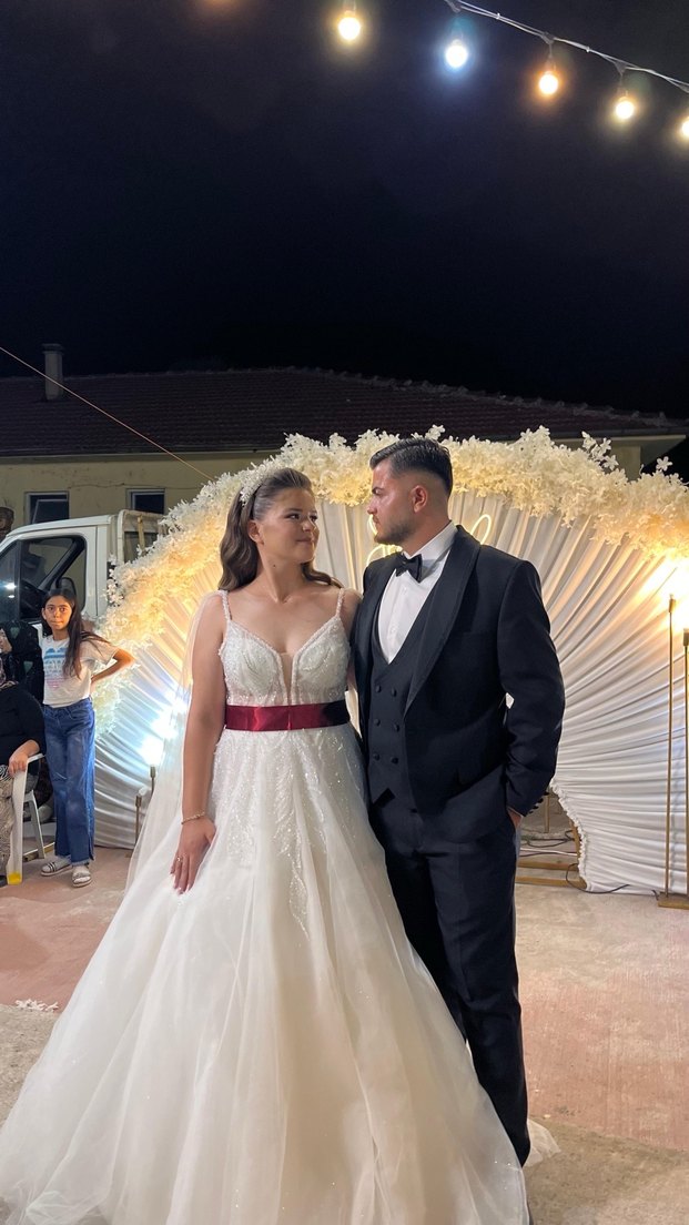 Beyaz renkte, askılı ve uzun boylu A kesim gelinlik. Modern klasik tarzda, klasik zarafeti yansıtan düzenli kesime sahip. Kuru temizleme yapılmadı ama temiz 38/40 beden