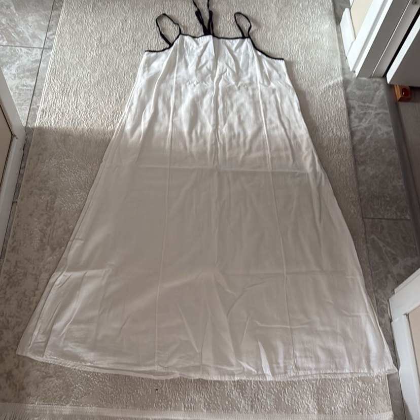 Askılı Beyaz Uzun Hamile elbise L beden keten