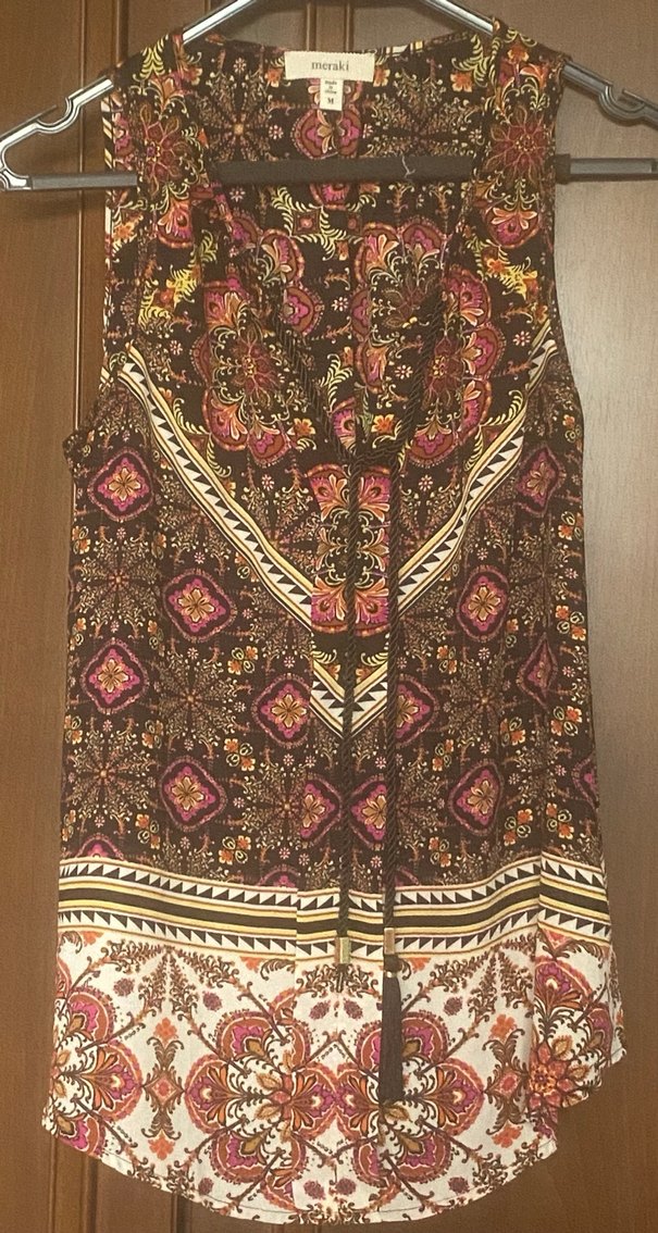 Boyu 70 cm iki koltuk arası 42 cm Uzun, kolsuz, bol kesim V yaka hamile tunik. Çok renkli, koyu bohem desenli tekstil kumaştan, fermuarlı. İade kabul etmiyorum