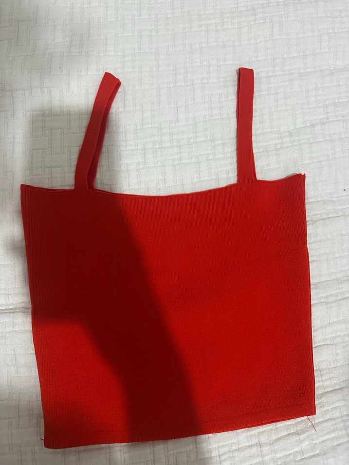 Turuncu renk askılı bluz, rahat kumaş, kullanılmadı