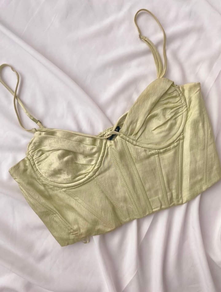 pilili ve askılı, straplez yakalı, midi boyda, vücuda oturan büstiyer. Cesur Paris tarzı günlük kullanım için uygun.