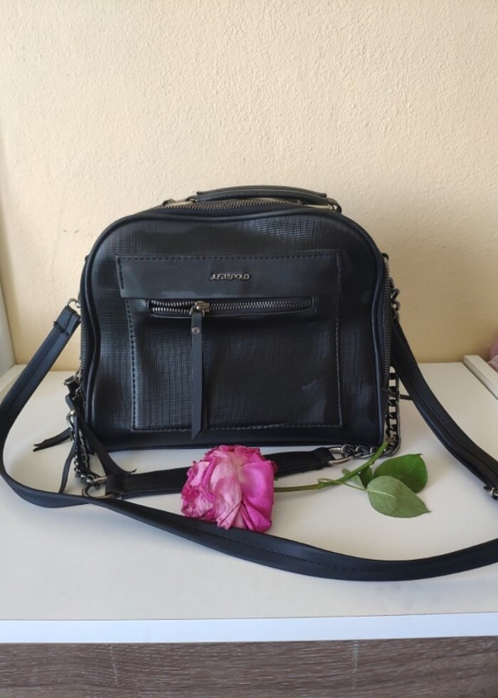 Çok kullanışlı bir çanta ben severek kullanmıştım. içinde orta kısmında fermuarli bir ara bölüm var onun fermuari kopuk birde arkadaki fermuarli kısmın ucu azicik kopuk zaten fotograflarda belli bunlar kullanima engel değil. #justpolo #askilicanta #zara #mango #lcw