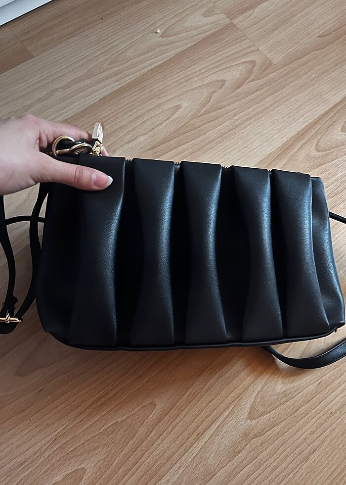 Siyah suni deri askılı çanta Zinciri yoktur Askısı ayarlanabilir