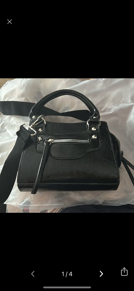 Siyah deri kadın çanta, tokalı ve ön fermuarlı cep detayına sahiptir. Goth tarzıyla trend belirleyiciler için Paris havası taşır. Günlük kullanıma uygundur.