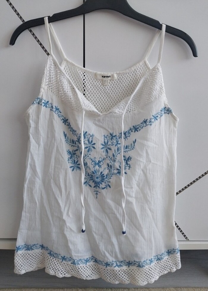 Askılı şile bezi dantelli beyaz mavi durumu iyi