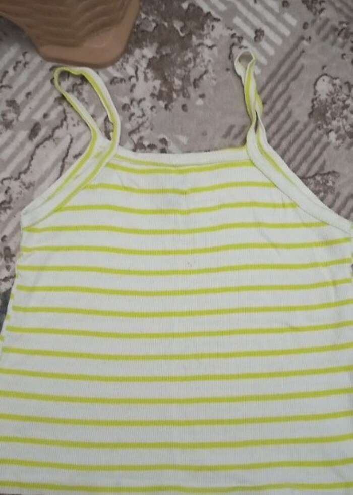 Sarı Beyaz çizgili askılı kız çocuk tişörtü bedeni s 36