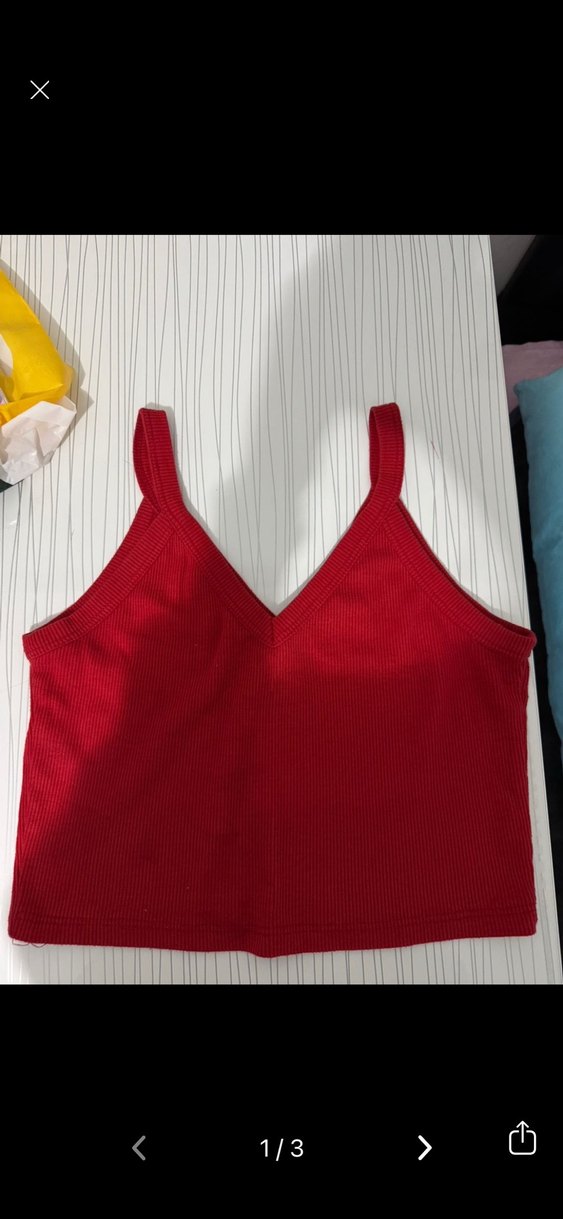 Kırmızı, V yakalı ve kolsuz, düz renkli, vücuda oturan kadı atlet. Yumuşak sentetik kumaştan, günlük kullanıma uygun şık ve rahat bir parça.