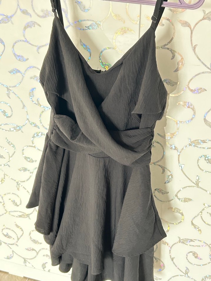 Askılı, Dökümlü Siyah elbise görünümlü tulum