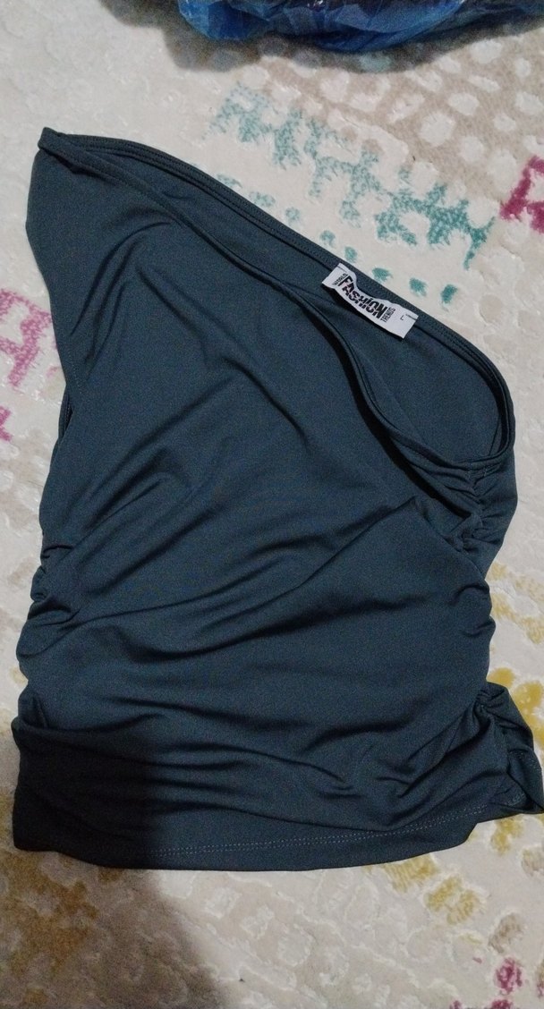 Askılı Drapeli Füme Rengi Tek Omuzlu Üst
