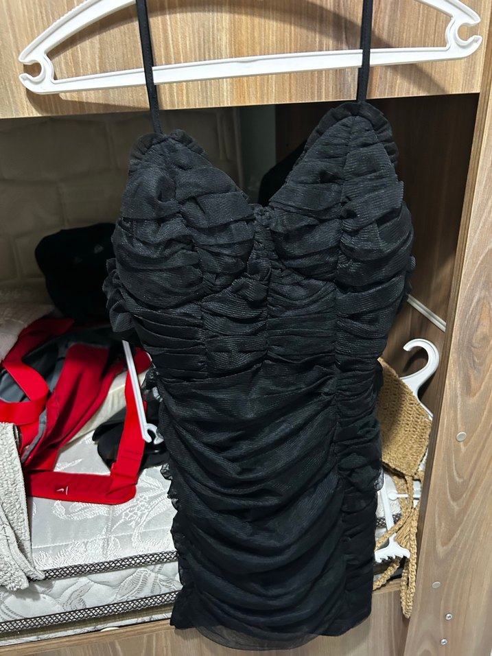 Askılı Drapeli Siyah Mini Elbise hiç giyilmedi