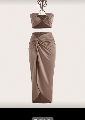 Askılı Drapeli Uzun Bej Alt Üst Takım