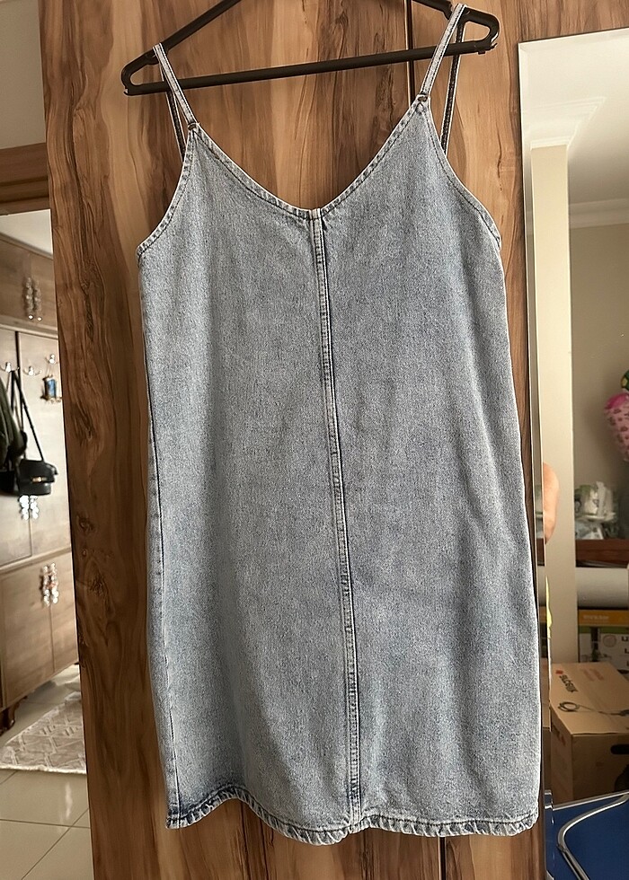 Askılı kot elbise